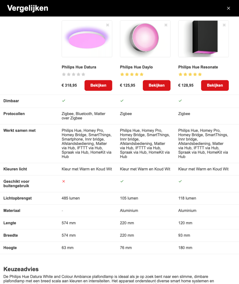Help klanten met het kiezen van de juiste smarthome producten, zonder extra werk voor jou dankzij onze slimme vergelijkingswidget.